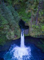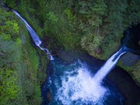 Metlako Falls is the final major waterfall along Eagle Creek. The falls drop out of narrow, calm pool, and thunder into a long impressive box canyon which extends a considerable distance downstream from the falls.  The falls have frequently been cited at different heights, ranging from estimates of 100-150 feet, to a more specific measurement of 101 feet obtained by some of the first extreme kayakers who sought to conquer the falls.  Our measurement shows the actual height to be just 82 feet, and this is corroborated with LiDAR data and renderings of the area.