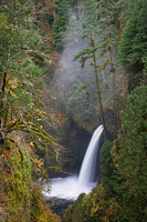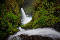 Located along the Eagle Creek trail in the Columbia River Gorge National Scenic area. Driving east along Interstate 84, exit at the Eagle Creek exit, one mile past the Bonneville Dam exit (immediately after a short tunnel). The parking area is only accessible to eastbound traffic (if you are driving west, exit and turn around at Exit 40 (Bonneville Dam), then to return to your westbound direction, do the same at Cascade Locks). Turn right at the first stop and proceed to the trailhead in about 1/2 mile. Park and begin up the very creatively constructed trail. In places, the cliffs have been blasted out so that the trail could bypass several deep canyons. The falls will be passed about 1.6 miles in along the trail, but as the former viewpoint no longer exists, there are no clear views of the falls any longer.