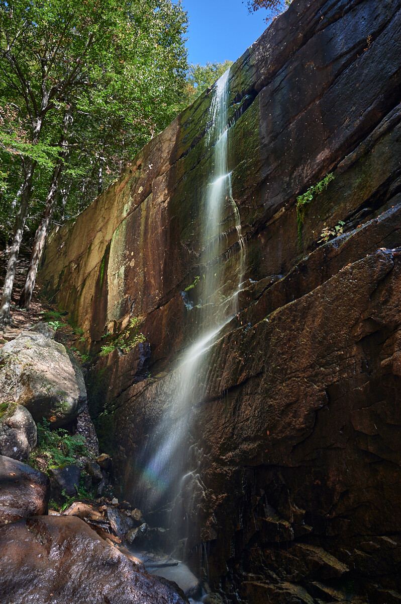Pitcher Falls is the underappreciated little sibling to its neighbor Champney Falls. The falls occur along an unnamed tributary branch of Champney Brook where it plunges about 50 feet over a sheer cliff into an impressive flume gorge about 200 feet away from the base of Champney Falls itself. Trees largely obscure Pitcher Falls from view of the Champney Falls trail but under certain conditions both waterfalls may be visible in tandem, at least in part.