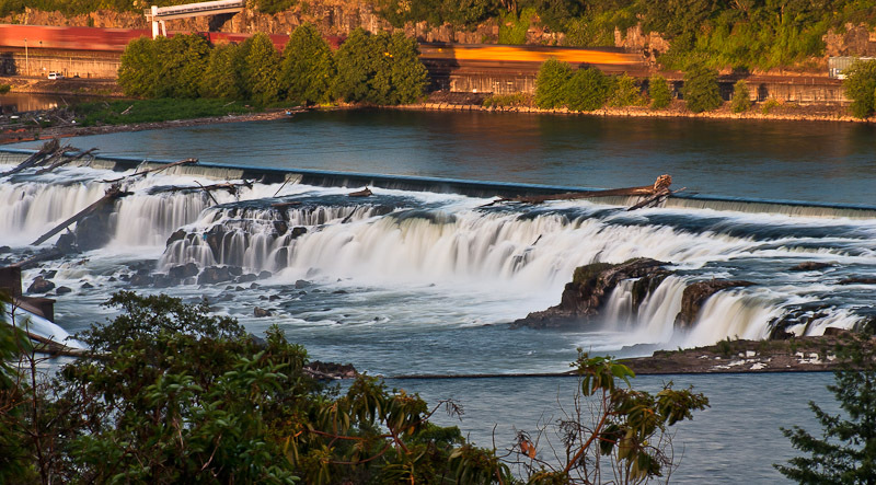 Unfortunately Willamette Falls will likely never again return to its completely natural stature - the development in the area is just too severe and would require billions of dollars in restoration effort to remove all of the alterations. However even with the encroachment of man, the falls are still quite impressive during full spate, and an effort to redevelop some of the area around the falls into an accessible urban park may do wonders to bringing the falls back into the notoriety it deserves.