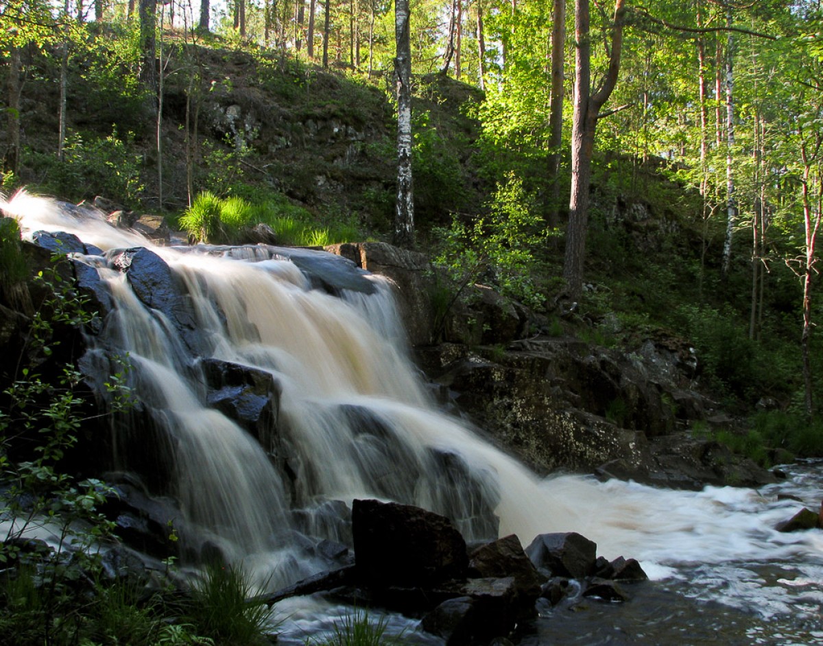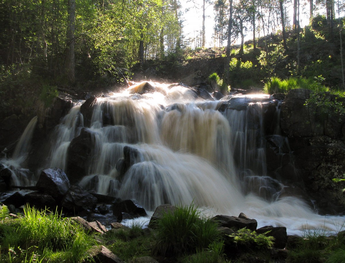Bosgårdsfallet is a small cascading fall which drops a total of approximately 10 meters in a small park. The falls are located a short distance off of Route 150 near the town of Torup.