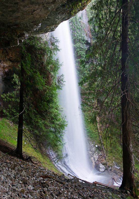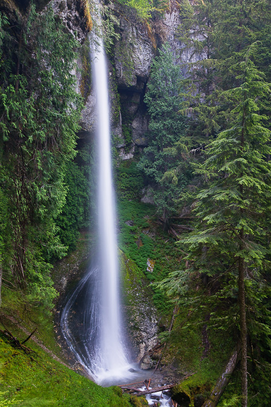 The Goat Creek Trail is a fantastic hike through deep forest and along cascading streams with multitudes of waterfalls. While Cathedral Falls is inconsistent, it is easily the best waterfall along the trail when the stream is swollen with snow melt and / or precipitation. During the later summer months this won't be nearly as interesting a location on its own, but the hike itself is still worth the drive as long as you continue a couple miles further upstream to see more of the valley.
