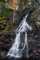 Upper Dunn Falls is a scenic veiling horsetail type fall which occurs along an unnamed tributary to the West Branch Ellis River a short distance upstream from where the Appalachian Trail crosses it. The falls drop 50 feet over a cliff which runs parallel to the river, then immediately as the tributary merges with the river below the falls, the river makes a hard right turn and flows directly away from the upper falls, tumbling over a small 5 foot cascade in the process.